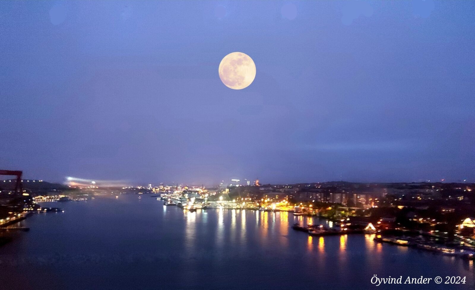 Fullmåne över Göteborgs hamn. Svart ram ingår.