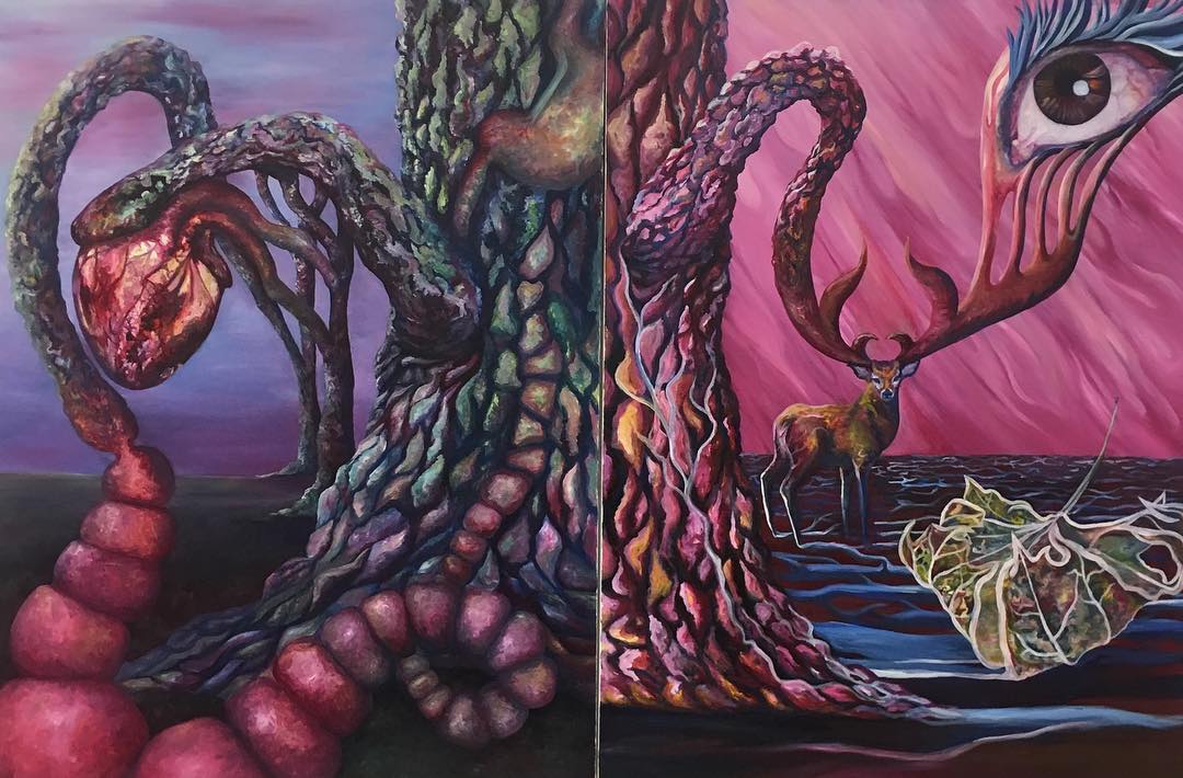 This painting was on display for an art show coincidentally called Zeitgeist at Space 776 in Brooklyn, New York in 2017. During this time, I was first exploring the connection between mind, body, spirit and Earth.