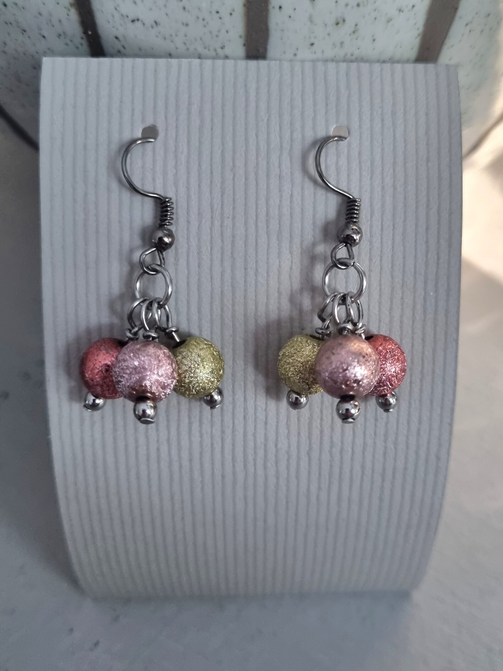 Örhängen med 8mm stardustpärlor i acryl. Öronkrokar och övriga detaljer i rostfritt stål.