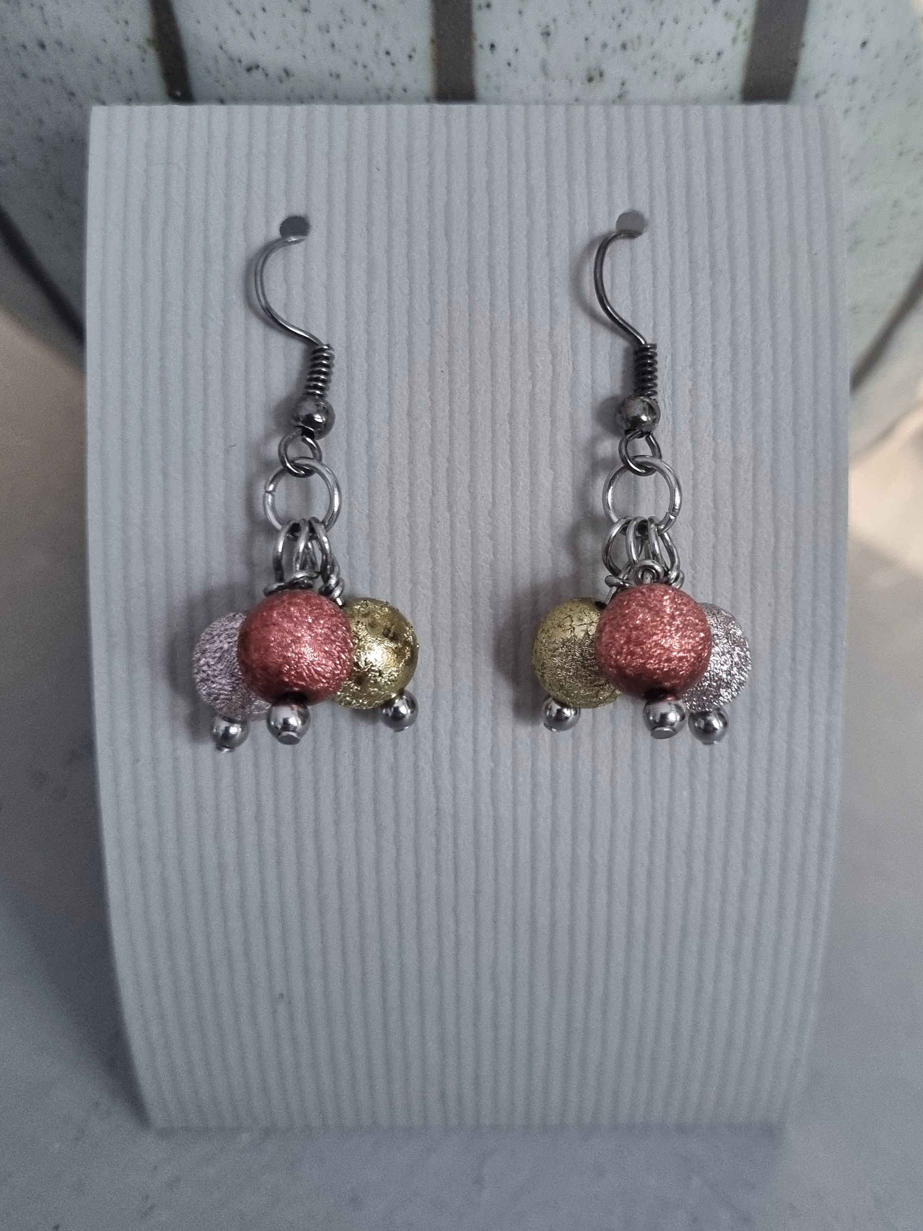 Örhängen med 8mm stardustpärlor i acryl. Öronkrokar och övriga detaljer i rostfritt stål.