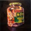 In this series, I painted glass containers filled with meat. In society today, we idolize many celebrities for simply being celebrities. We have a celebrity obsession in our society. Many celebrities and pop-culture icons become commoditized. They are packaged and sold to us much like the foods we consume. I created a personification of a prepackaged idea of the public images of several celebrities. I allowed the meat to embody a specific identity in the same way that we allow celebrities to embody identities. The jars become the preservation of celebrity. I created conceptual portraits of society’s view on these celebrities. The larger canvases contain portraits that had generally positive images and perhaps could be taken in larger doses and the smaller canvases contain portraits of celebrities who generally had negative images and perhaps could be taken in smaller doses based on their social image in 2015.